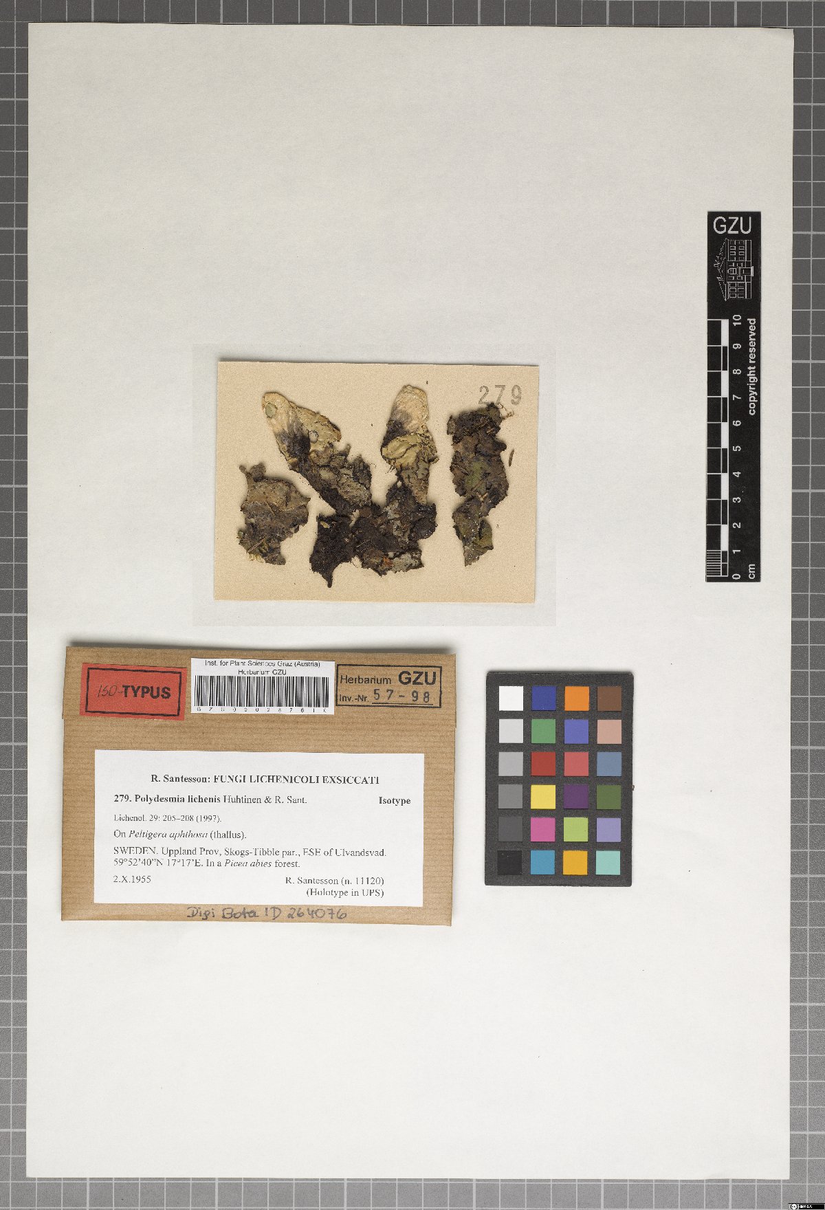 | Creator | Santesson,R. 11120 Fungi Lichenicoli Exsiccati (R. Santesson) 279 |