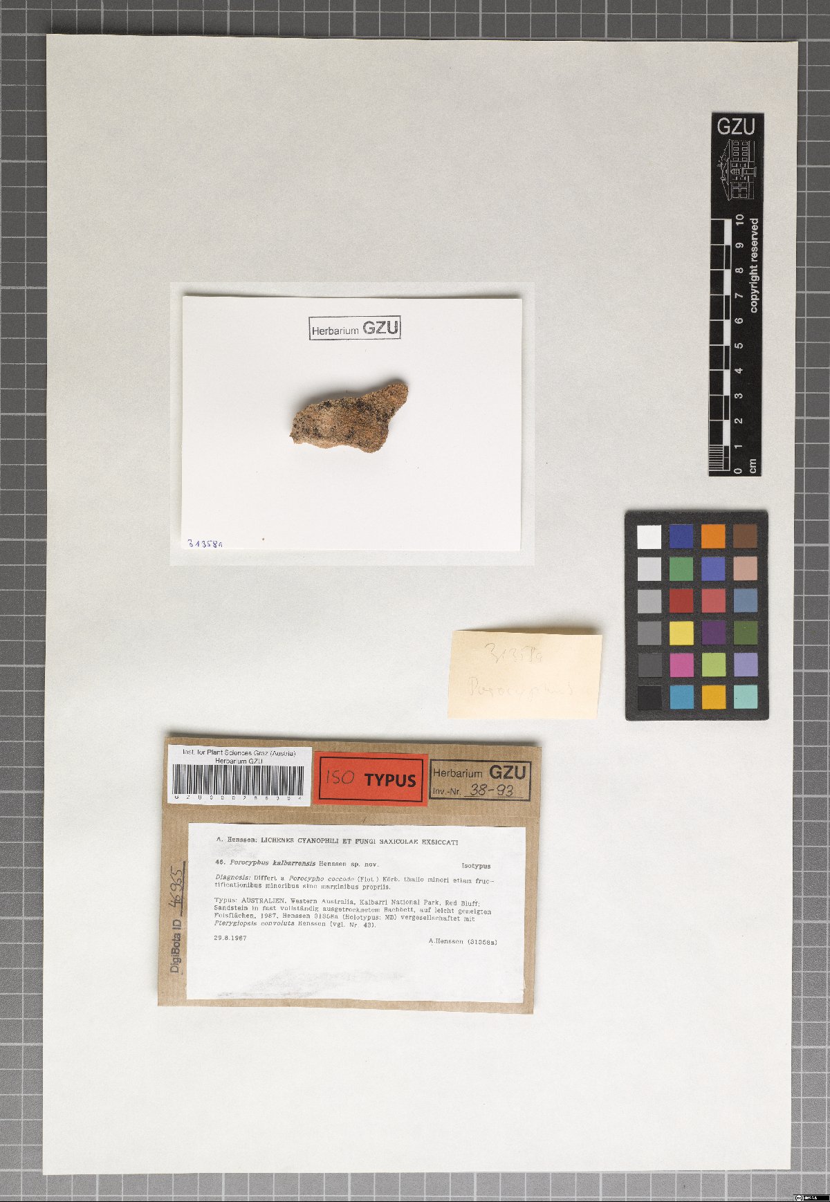 | Creator | Henssen,A. 31358 Henssen, Lichenes cyanophili et fungi saxicolae exsiccati 46 |